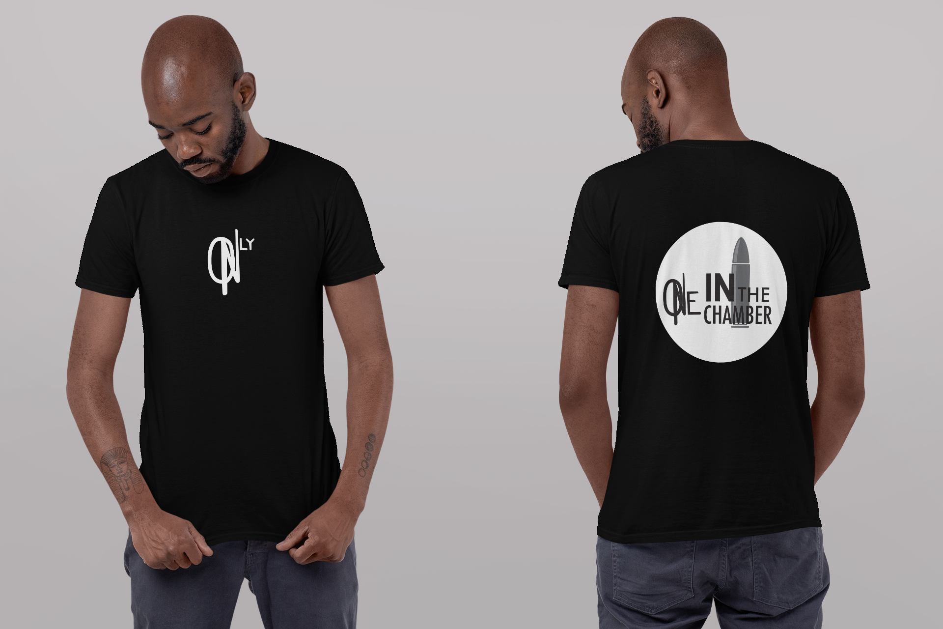 A Bella Tee-Shirt with a direct to film technique involving printing the design directly onto a film and then transferring it to the Tee-Shirt, with a custom design vinyl cutout.