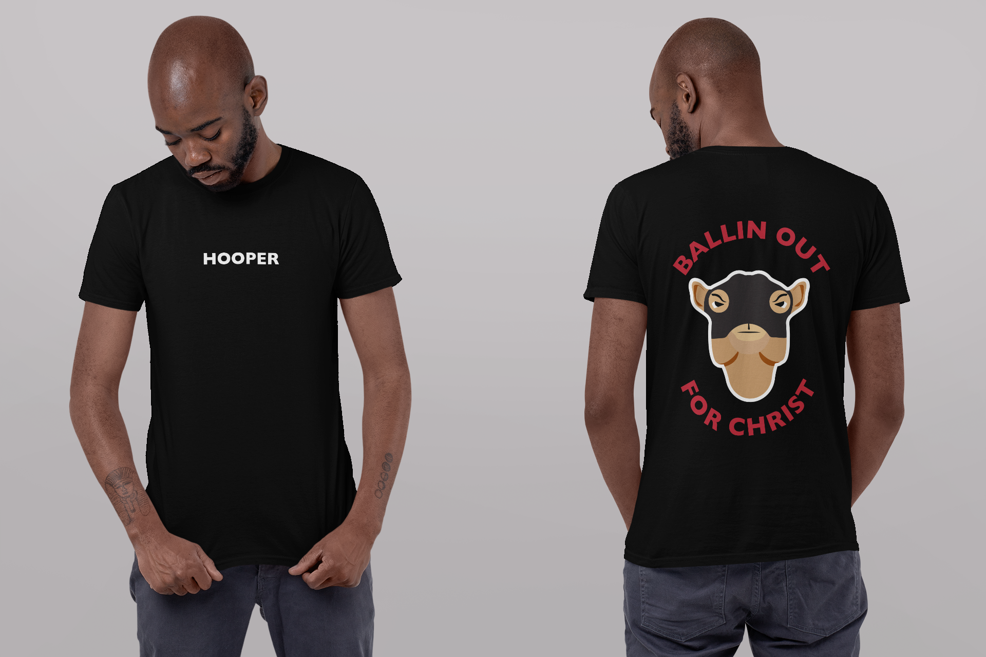 A Bella Tee-Shirt with a direct to film technique involving printing the design directly onto a film and then transferring it to the Tee-Shirt, with a vinyl text cutout.
