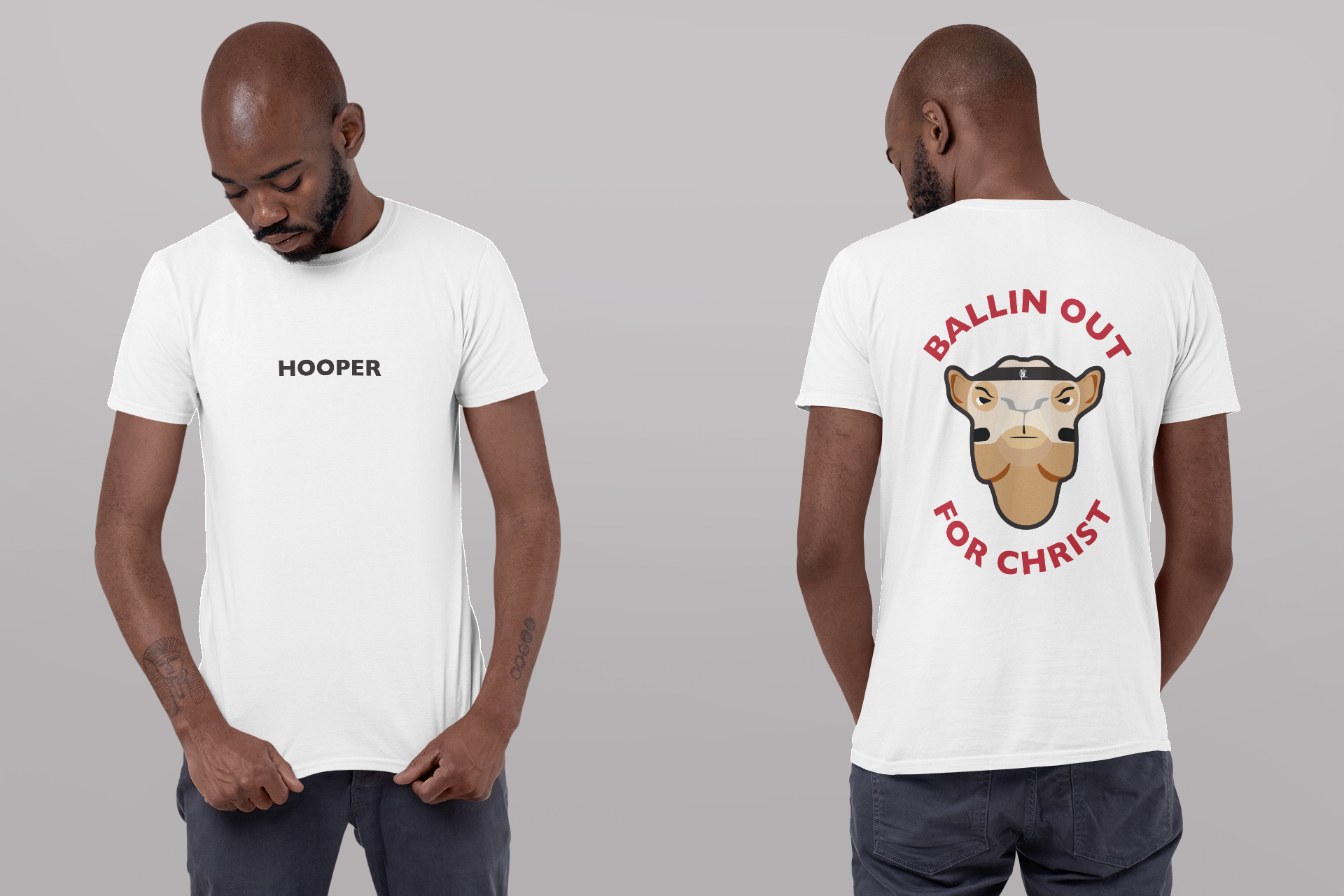 A Bella Tee-Shirt with a direct to film technique involving printing the design directly onto a film and then transferring it to the Tee-Shirt, with a vinyl text cutout.